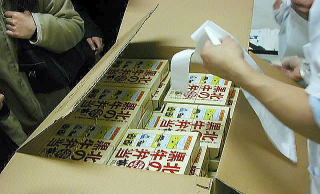 そうこうしているうちに、隣の輸送駅弁コーナーで仙台の「牛タン弁当」が初の売り切れに。時刻は11時半過ぎ。遅れていた松山駅「醤油めし」や時間通りの宮崎駅「椎茸めし」などを買いあさります。派手に買っている私を見てとなりのおばちゃん二人が「そういう関係のお仕事なんですか?」と真顔で質問。「いえね、駅弁のホームページを持っているもんで…(^^;)」「どおりで。やっぱりプロだったんですね」「…(-_-;)。」