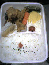 | 2005年8月。左は多治見駅の(びいどろや)さん。 駅そばは健在ですが弁当はほか弁のみです。ケータイ画像で申し訳ありませんが、から揚げ弁当です。 |
