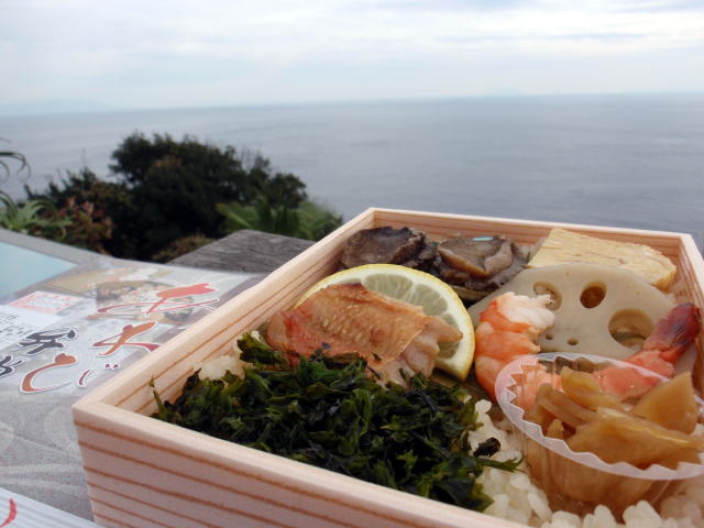 海を見ながら海の幸の駅弁を食べるのは最高です。海苔の香りが磯の香りを増幅させています。この日は風もなく、穏やかな秋の1日でした。