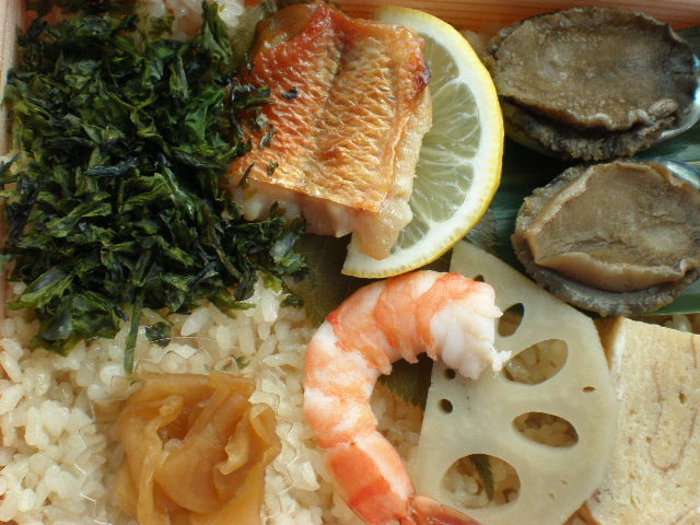 下は2010年11月7日、伊豆急下田駅で購入した「姫あわび弁当」1000円。2010年9月頃からの新作駅弁のようです。