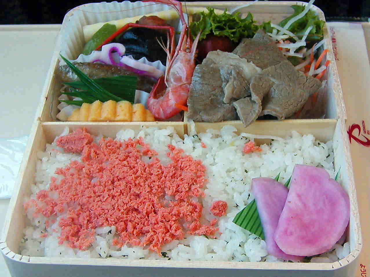 飛騨牛のしゃぶしゃぶ、知多半島で獲れるタコの柔らか煮、長良川の稚鮎など、名古屋周辺の名物で作った2003年夏の駅弁です。