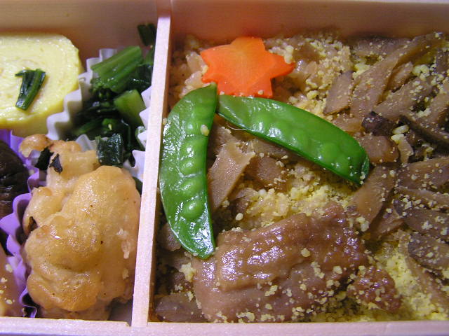 名古屋コーチンのスープで炊いたというコクのあるご飯と、名古屋コーチンを照り焼きにしたお弁当。