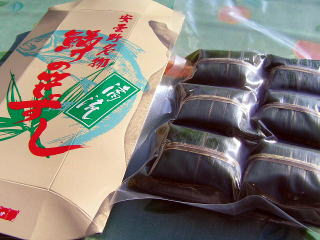 2006年9月10日、信濃大町駅で購入した「古紫姫」、「若笹寿し」、「鱒の清流笹ずし」。