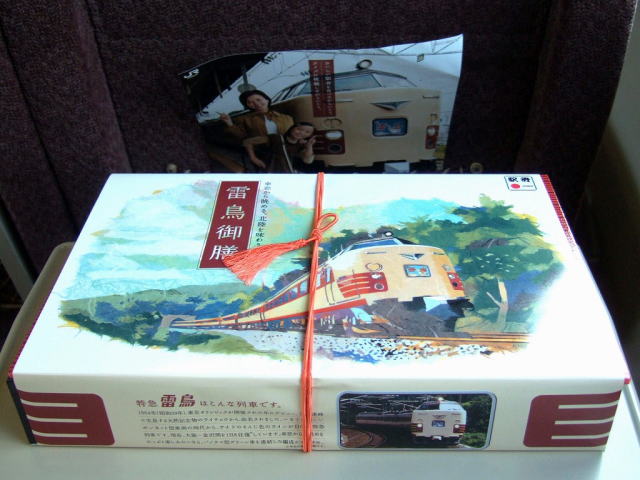 下は2008年7月1日、CHさんが購入した「雷鳥御膳」2008年バージョン。2008年は『この夏は「雷鳥号」で出かけよう!』キャンペーンの一環として7月1日から9月30日までの3ヶ月間にわたり販売されました。貴重な画像どうもありがとうございました。以下はコメントです。