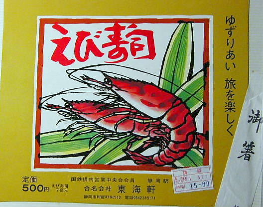1976年3月27日購入。 えびの押し寿司が7個入っていました。