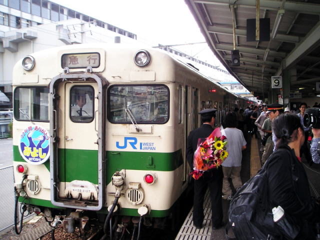 2007年6月30日、1985年3月以来22年間の役目を終えた「急行みよし号」のお別れセレモニー。その最期の姿を見届けようと最終日に広島入りしたはやしさんのレポートを広島駅の駅弁とともにご紹介します。はやしさん、貴重な画像および動画、コメントありがとうございました。