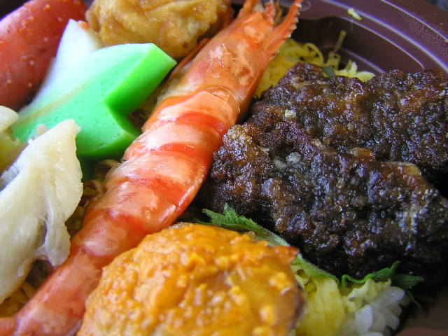 源氏と平家の最後の合戦は壇ノ浦の「早鞆の瀬戸」。この地名に因んでこれらのお弁当はできています。左はちらし寿司、右は瀬戸内の海の幸も盛り込んだ幕の内風お弁当でした。