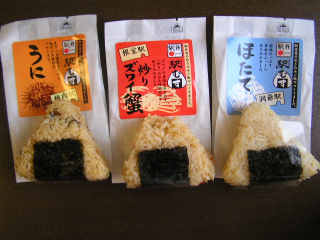 2007年3月3日、旭川駅で購入した「駅むす 洞爺駅 ほたて」190円、「駅むす