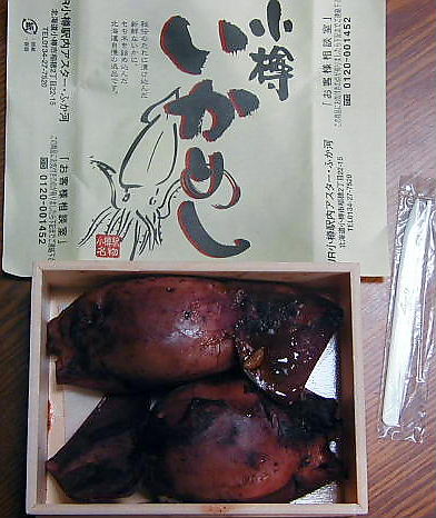 森駅や旭川駅よりも味が薄めのいかめしです。「JR小樽駅構内」という表示があります。 |