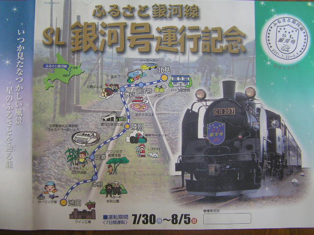 下は2001年7月30日〜8月5日、C11207が牽引する「ふるさと銀河線SL銀河号運行記念弁当」です。この資料は調製元である浜田旅館様の御厚意で、掛け紙および中身の画像としていただいたものです。ありがとうございました。