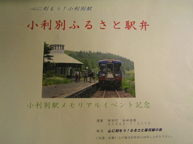 下は上とほぼ同じ掛け紙ですが、日付が入っています。2005年の9月24日に実施された小利別駅メモリアルイペントの駅弁「小利別ふるさと駅弁」。この資料については2006年にオークションで入手しました。
