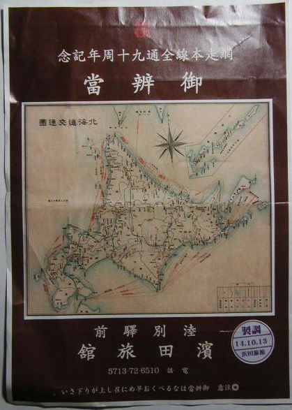 下は2005年11月13日、旧網走本線全線開通記念「ちほく弁当」。この資料は調製元である浜田旅館様の御厚意で、カラーコピーとしていただいたものです。ありがとうございました。