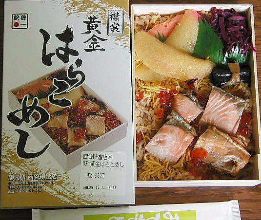 下は2006年11月13日、イトーヨーカドー駅弁大会で購入した「北海黄金親子めし」。ほとんど上の駅弁のリニューアルな内容です。
