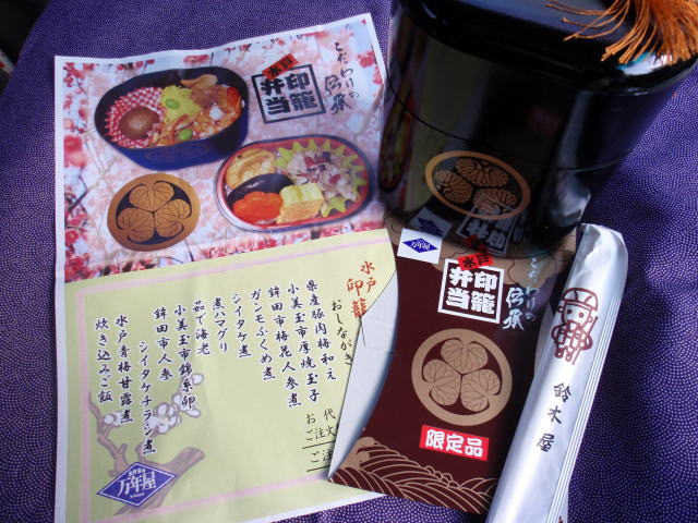 下は2006年11月4日、水戸駅で購入の「限定印籠弁当」。売店の人の話によると、2007年春までの販売だそうですが、詳しいことはわかりません。