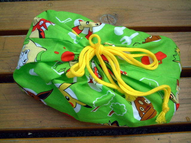 キモリ、アチャコ、ピカチュウ、カビゴン、ミズゴロウが勢揃いしたパッケージに風呂敷はピカュウが中心。ポケモンファンにはこたえられないッス。