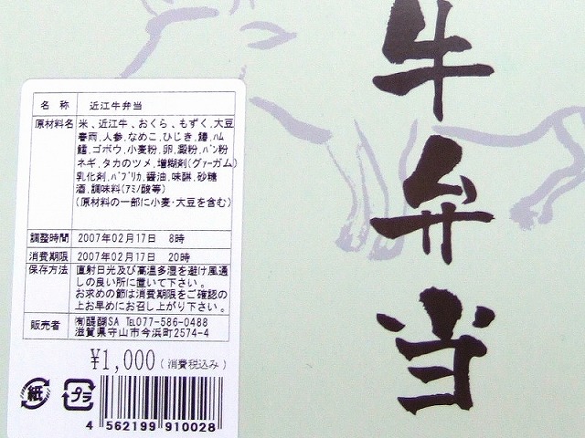 下は2007年2月17日、CHさんが米原駅で購入した「近江牛弁当」。貴重な画像どうもありがとうございました。以下はコメントです。