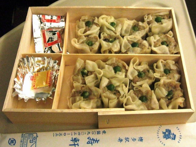 1月1日、博多駅新幹線ホームの寿軒売店で購入。 500円。16個入りのシウマイにカラシと酢醤油が入っています。