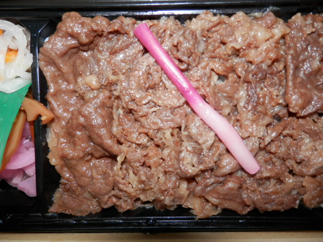付け合わせは紅白なます、はじかみ、蓮根煮、大根桜漬け。どれもこれも美味しいです。しかし、敢えて希望を言えば、すき焼き弁当ならば長ネギやシラタキ、焼き豆腐が欲しいなと思うのは私だけでしょうか。あるいは高菜漬けを入れるとか、ローカル色も欲しいところ。九州では類似駅弁が数えるほどしかなく、霜降りのすき焼き肉が美味しいので1番になりましたが、牛肉駅弁がひしめく本州だったら、この極上肉質でこの値段というコストパフォーマンスはともかく、体裁としてこの程度では没個性的だとも言えます。少し辛口なコメントをしてしまいましたが、かつて「肉メない弁当」で個性ある肉の駅弁を作った実績を持つカイロ堂が調製元であり、実力があるからこそ「九州の牛肉駅弁ここにあり」と知らしめるローカル色を打ち出してもらいたいと思います。(その後11月に、「佐賀牛サーロインステーキ&焼き肉弁当」2100円が出たというのを知りましたが。。。)
