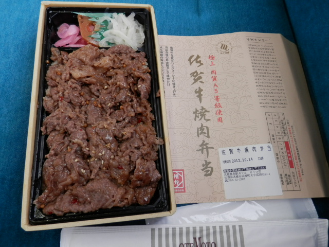 2012年10月14日、武雄温泉駅を2年ぶりに訪れました。今回は駅構内にあるカイロ堂に入り、現地だけで売られる駅弁なども調査します。また、新商品で駅弁グランプリにエントリーの「佐賀牛極上カルビ焼肉弁当」1575円も目当ての一つでしたが、今回は食材がないということで買うことはできませんでした。