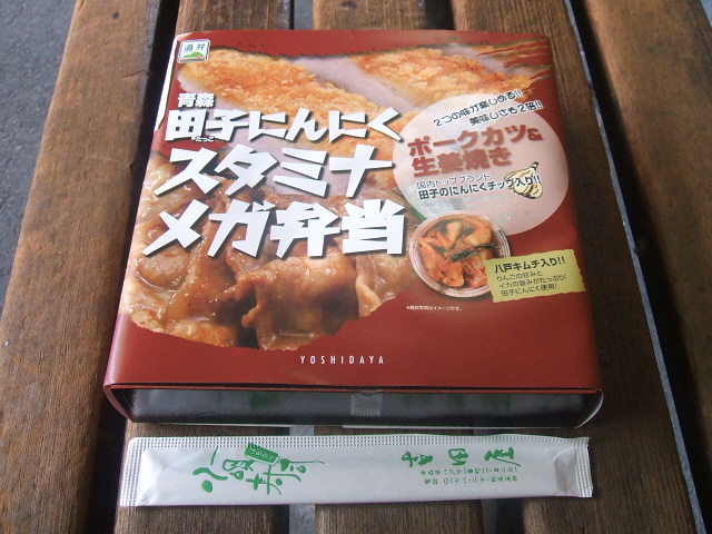 下は2009年3月7日、道風ライナーさんがジャスコ駅弁大会で購入した「青森田子にんにくスタミナメガ弁当」。調製は吉田屋。貴重な画像どうもありがとうございました。以下はコメントです。