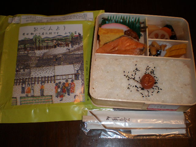 下は2009年1月10日、京王駅弁大会で復刻した「おべんとう」。掛け紙を昔のもののようにもう少し上手に印刷できれば良かったですね。