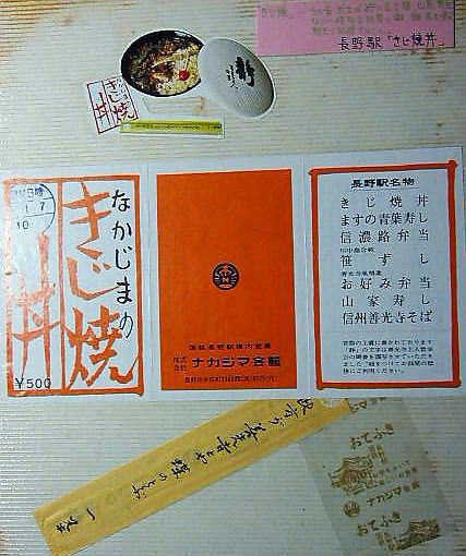 最後に当サイトでお世話になり、長野駅弁に思い入れの深い将棋仮面さんが平成19(2007)年1月20日、長野駅で購入された「きじ焼丼」のパッケージと寄せられたメッセージを掲載しておきたいと思います。