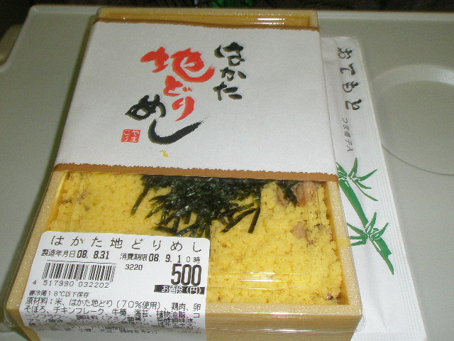 2008年8月31日、福岡空港で購入した「はかた地どりめし」500円。調製元はヤマコウ。