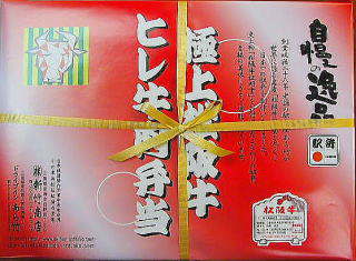 | ↑日本一高価な駅弁。松阪駅「極上松阪牛ヒレ牛肉弁当」10500円。(あら竹商店) |