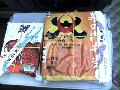 米子駅弁の米吾は2007年10月1日より「吾左衛門寿し 漬け鯵」1470円と「吾左衛門寿し 蟹」1732円の2種を新発売します。なお、公式サイトで本日に予告が出ましたが、実際に注文できるようになるのは10月に入ってからです。実は私はよく「吾左衛門寿し」を通販で買うため、お得意様の1人ということで、年に2〜3度くらい社内誌や商品広告ハガキが送られてきています。今回は8月の終わりに上記2種のお得意様先行販売(各300本)のお知らせハガキが届き、9月25日までの申込でしたので、まだ大丈夫だろうと高をくくっていましたら、「吾左衛門寿し 漬け鯵」の方が大人気で、たった1週間で売り切れてしまったということでした。注目度が高いということの証明ですね。したがって私も暫くは入手できませんが、20日に公式サイトで予告が出ましたのでお知らせいたします。こちらとこちら。 |