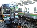 メインイベントはもちろん…。ただ悲しいかな、昨日は友人もろとも疲れきって…。(ρ_-)o…8時…(+_+)しまった!寝坊した……(-o-;)本当は、7時前には金沢を発つはずだったんだが…ワープ確定。でも、ワープしないとえらく滅茶苦茶になるから…。 ↓D-Rossoさんのレス 白兎さんおはようございます。今日こそいよいよ「聖地」ですね!ボロさ加減なら国内屈指の「老紳士」(^^;)、心ゆくまで堪能してきてください!金沢8時出発では、8:55発の富山58・28にはギリで間に合ったのか、どうか・・・ ↓砂丘の白兎さんのレス ワ〜〜プ! 富山から糸魚川まで、『はくたか』でワープ。先程、魚津を出たんだが、接続の普通列車(←糸魚川まで行かない)に国鉄色の475系がぁっ!!此奴とは縁が無いよなぁ…。>D-Rosso様 国鉄色のキハ28・58は、富山の電車庫で寝てました。あと、今日は年末年始の休日ダイヤみたいです。 ↓上ちゃんのレス 砂丘の白兎さん、こんにちは。いよいよお別れの旅ですか。いや、白兎さんならもう1回は来ずにはいられないような気が。。。しかし、来られないことを想定して、涙ちょちょぎれるまでしっかりとお別れしてきてください。けんたさんとのニアミスはあるのでしょうか。 ↓砂丘の白兎さんのレス 別れの旅路 10分前、糸魚川を出発!ちなみに…この時間にこだわったのは、少しでも風景を眺めながら乗っておきたいから…。 ↓D-Rossoさんのレス う〜む、DMH17の轟音はやはりスバラシイ・・・(感涙)糸魚川発10:43だとすると、今日の運用は国鉄標準色の115とスカ色の125重連ですね!うわ、ちょ〜羨ましい・・・ ↓砂丘の白兎さんのレス 朝飯兼昼飯 富山「幕の内弁当」。パッケージとは裏腹に洋食弁当のこれを、『はくたか』の車内販売からゲット!こういうシチュエーションで食べる駅弁がたまらん!>D-Rosso様 御名答!友人と共に萌えてます…。 ↓砂丘の白兎さんのレス 折り返し 『あずさ』や普通列車から大量の客を吸い込んで、何とか南小谷を発車。私の知っている、大糸北線じゃない…(^o^;) ↓砂丘の白兎さんのレス いきなりの悲しいお知らせ 糸魚川到着後、国鉄一般色と省線色の併結編成から、“タラコ”の 単行に入換。その際、富山行の普通列車に『はくたか』から垣間見た国鉄色の475系3両が!もちろん私は拝んだんだが、他の方も汽車との2ショットで拝みモード。不思議に思いつつも発車をムービーに撮ったのだが…。暫くして、判明。その編成は運命が一緒だと…(T_T)あっ…電波が復活するのを待っていたら、南小谷に着いたわ…。当然、折り返すけど。 ↓砂丘の白兎さんのレス JREで超ボロ汽車 ダイヤ改正以降、こういう乙な画は見られないんだ…。しかし…あの“北陸大地震”の後、間違い無く“聖地巡礼”が増えたわ。もちろん、私もその類だが…。 ↓D-Rossoさんのレス そうなんですよね。最近の大糸北線、週末は通勤ラッシュ並みの混雑。もちろん時間帯によりけりですが。3月にかけて、週末はより一層の混雑が予想されますね。 ↓砂丘の白兎さんのレス さよなら… 今までありがとう。長い間、御疲れ様…。 ↓稲口町さんのレス 国鉄型車両にかなり思い入れがあるようですね。私の年代だと、キハ58系統は散々乗ったので…今日は金沢に戻り、明日帰鳥でしょうね… ↓けんたさんのレス こんばんは。やった〜1年が終わった・・・というわけで、昨日の夕方で仕事が終わり、兄と一緒の北陸珍道中?です。僕はムーンライト信州で白馬に入り、車で前日糸魚川入りした兄は始発から2往復(朝一は平岩往復)で、9時前に糸魚川に着いた後、車は置いて9時過ぎの特急で富山に向かいました。ということは、白兎さんとは富山〜糸魚川間のどこかですれ違ったと思いますね。金沢のお知り合いとご一緒なのでしょうか。お互いおいしいものたくさんいただいているといった状況でしょうね・・・。先日彦根ということは、てっきり泣く泣く帰られたのかと思いましたが、「聖地巡礼」出来ていがったっすね・・・。あらためて、白兎さんやD-Rossoさんのような方の本当に多いのを実感しました。もちろん僕も・・・。僕の乗ったのは、「10番」書き込みのオレンジ色の車両1両でした。東京から北陸へ向かう、一般の18きっぷ客とあいまってすごい混雑で、この列車こそ2両にして欲しかったっす・・・。というわけで、現在敦賀のホテルです。2人合わせて368cmの、顔の濃いやんちゃな大男が、今後も白兎さんのお近くを徘徊する展開になりそうです。これからカニ食べて大浴場に行きます。詳細はまたゆっくり・・・。 ↓CHさんのレス おっと!白兎さんに、けんたさんまでお越しとは・・・・。国鉄急行色の475系は・・・・外見はともかく、中身はほかの475系とそう差異はなかったはずです。置き換え対象順位からいうと、419系が1番で(現在13本)その次が475系サハ編成・471系(あわせて6本)でなかったかなと。年代および状態からいうと実は415-800もかなり来ております・・・。まあここまでよく走らせたというのが地元民の