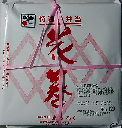 2005年2月27日、東北を旅行した職場の同僚に頼んで新花巻駅にて買ってきてもらいました。「特製お弁当花巻」1120円。